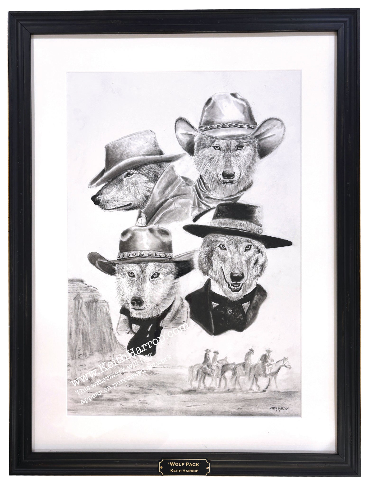 This piece is part of 'The Western Collection' Original anthropomorphic pencil drawings inspired by classic Western movies and paintings.